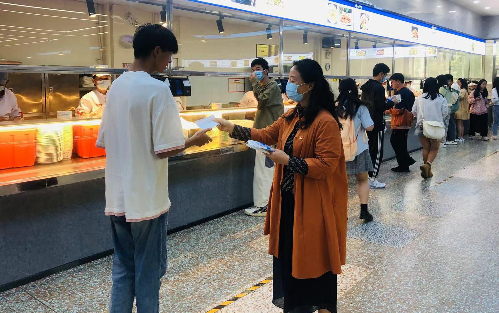 4.由校妇联和后勤集团联合组织疫情防控宣传进宿舍、进食堂活动。深入3800余间学生宿舍和学校9个食堂,发放防疫宣传资料和个人防护物资,开展走访慰问,倾听学生诉求,勉励同学们珍惜学习时光,刻苦学习,报效祖国。