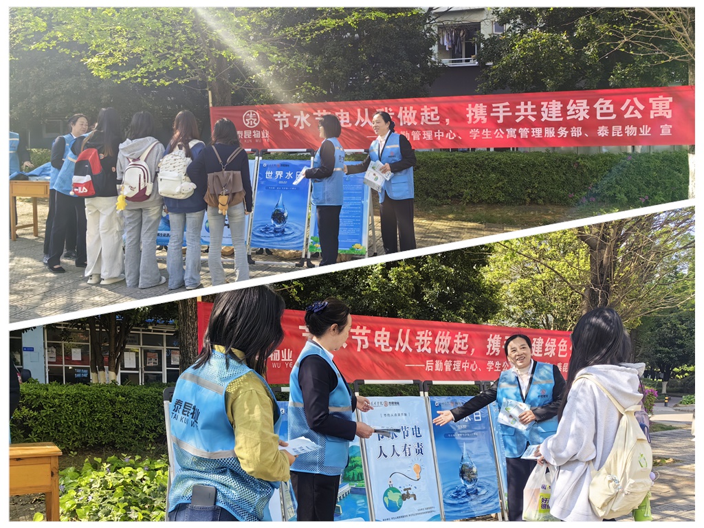 为深入贯彻绿色低碳发展理念,进一步强化师生节能意识,后勤管理中心学生公寓管理服务部携手服务企业(泰昆物业),于2026年3月24日在学生公寓片区、食堂片区开展了以“节水节电从我做起,携手共建绿色公寓”为主题的节能宣传活动。